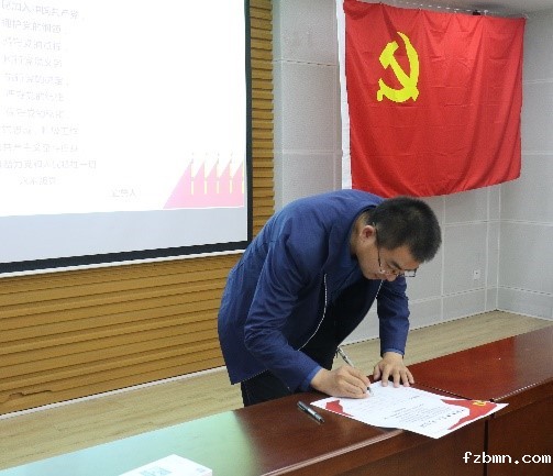 随后,党支部全体党员在王洛忠同志的带领下重温入党誓词,回顾入党初心,并时刻提醒自身以党员的标准严格要求自己。重温入党誓词不仅是口头上的宣誓,更是心灵上的重视。党支部还组织全体党员在纸质版的入党誓词上签名,作为珍贵材料由支部存档。落笔的那一刻,所有人都严肃而庄重,仿佛写下的不仅是几个简单的汉字,更是一个承诺、一份责任、一种信仰。