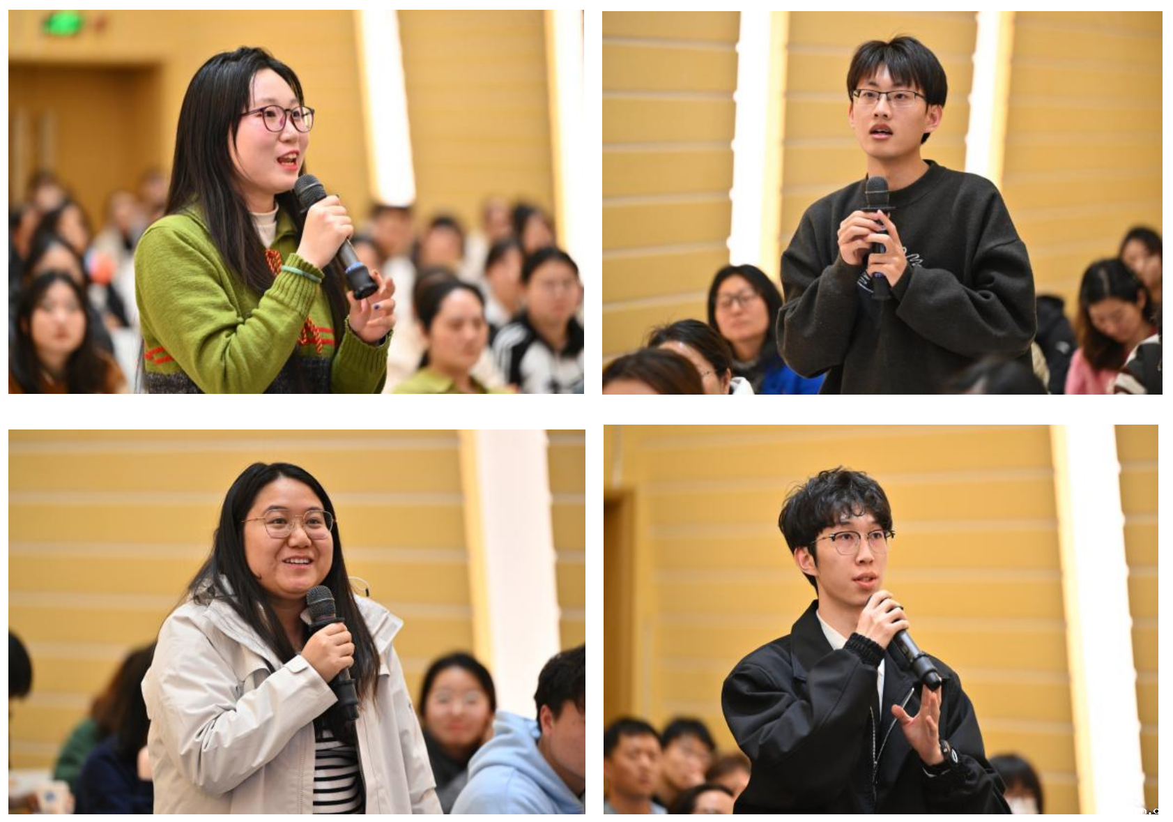 现场气氛热烈,在互动问答环节,同学们就“巳升升”设计难题、跨学科合作、传统文化传播以及AI与人的关系等话题积极提问。