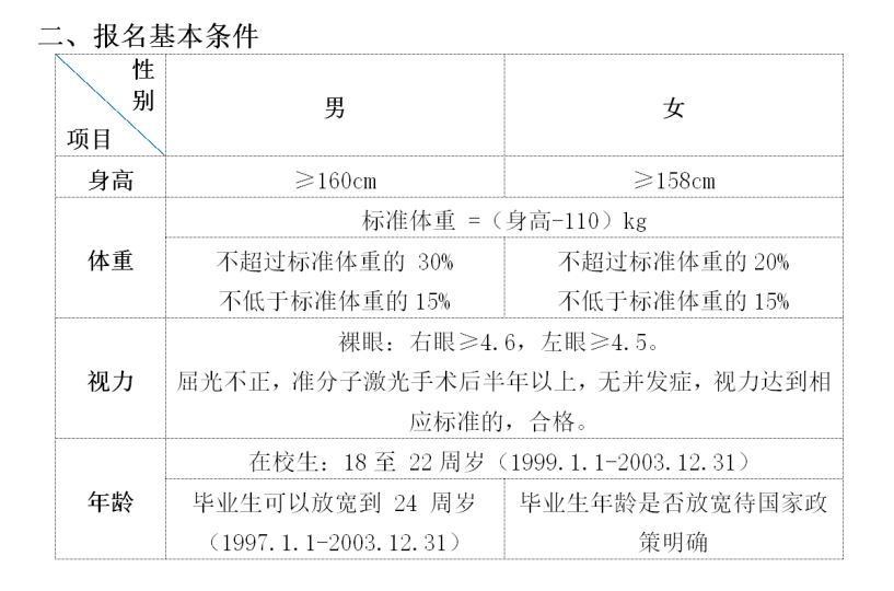 (注意:对视力的要求属于硬性标准,视力不合格的同学可自主选择相应矫正措施)