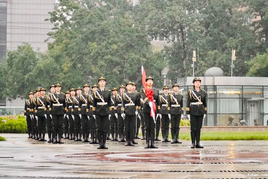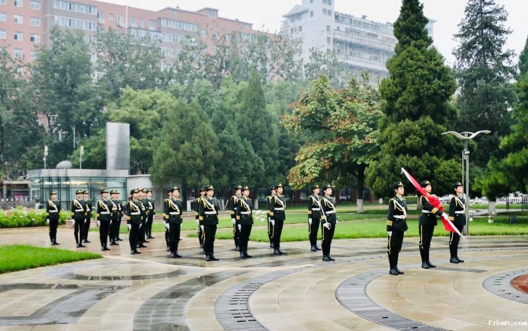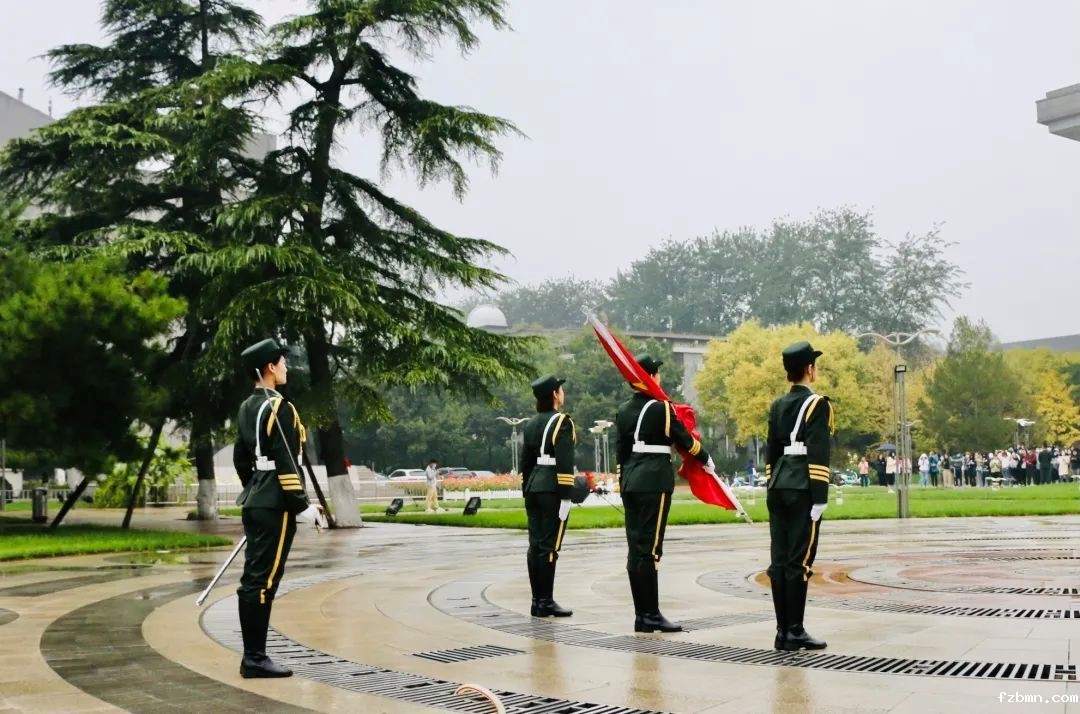 在细雨蒙蒙的十月清晨,国旗护卫队圆满完成此次国庆升旗任务,全场师生共同见证了这神圣庄严的时刻!