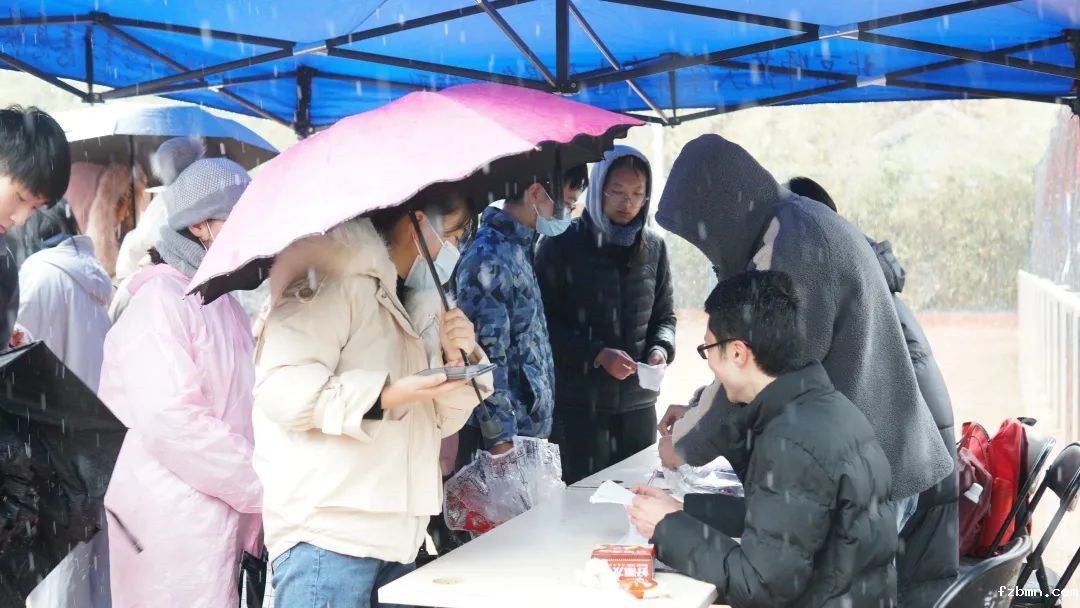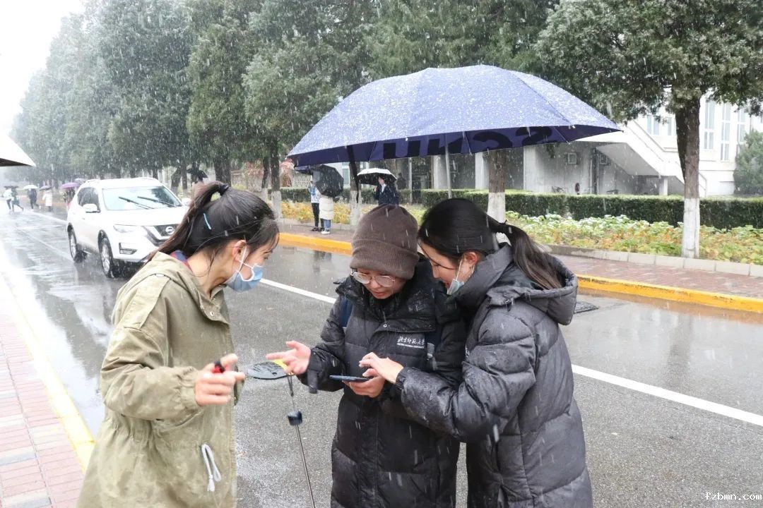 9点,第一批次正式出发。蒙蒙细雨携着点点雪花从天而降,落在头上点缀了青丝,落在身上变作深色的印记,落在地上化成一滩温柔的水。但阴冷的天气阻挡不了同学们的前进的热情,300多位学子迎着雨雪,讨论着,寻找着,奔跑着,为寒冬的校园增添了昂扬的活力。