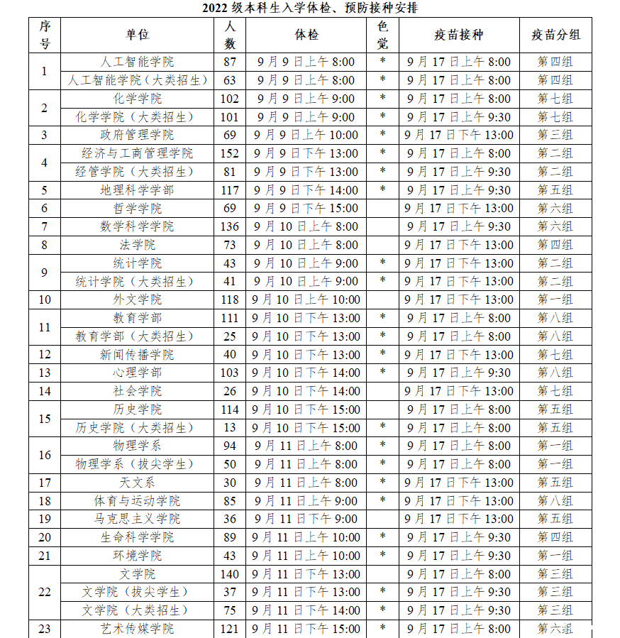 9月5日各院(系)统一到校医院公共卫生科领取体检表,昌平校园住宿新生另行通知。