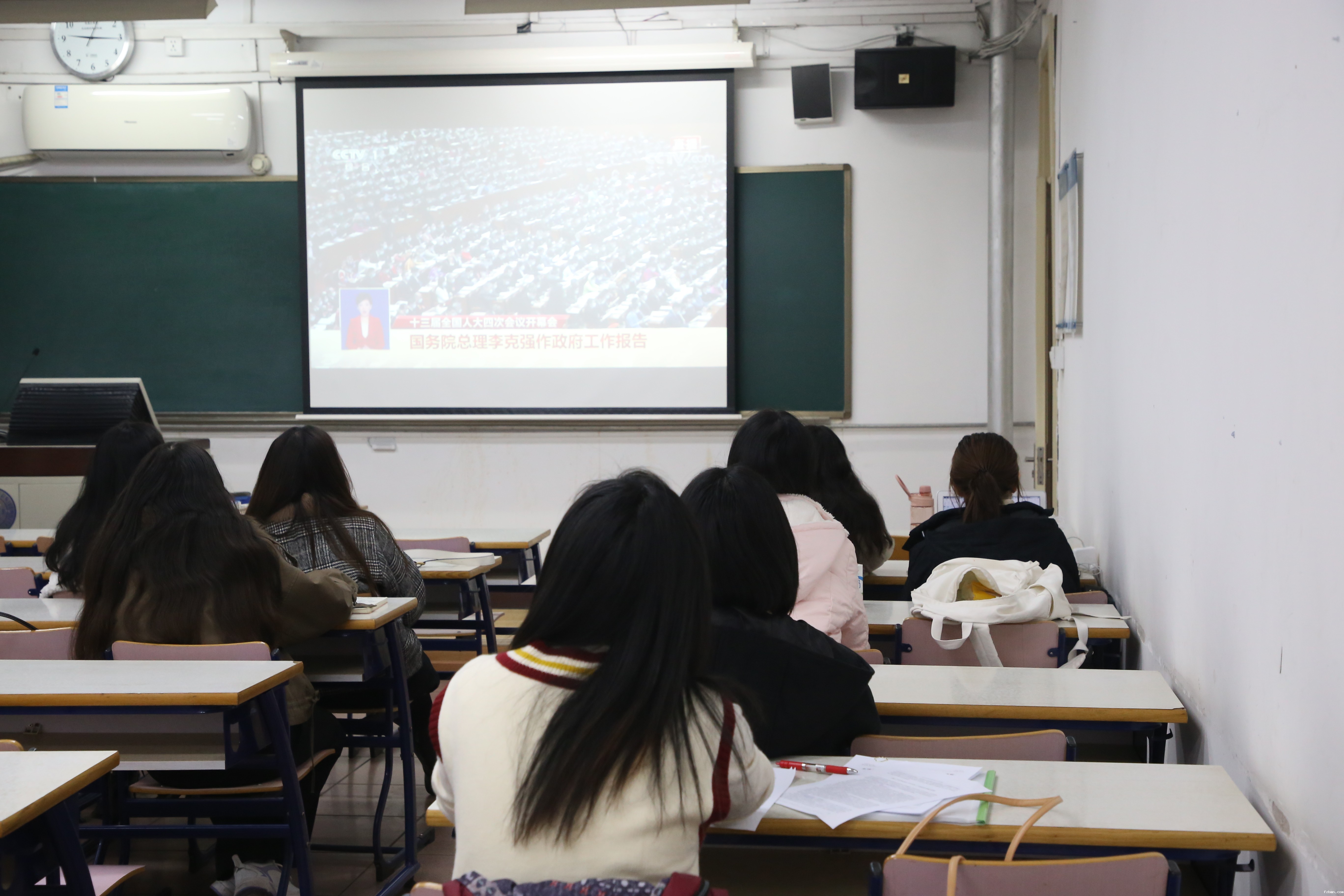 3月5日上午,十三届全国人大四次会议开幕会在北京人民大会堂隆重举行,中共中央总书记、国家主席、中央军委主席习近平出席大会,国务院总理李克强作关于政府工作的报告。党委学生工作部组织学生代表在教二楼212教室集体观看了大会直播。