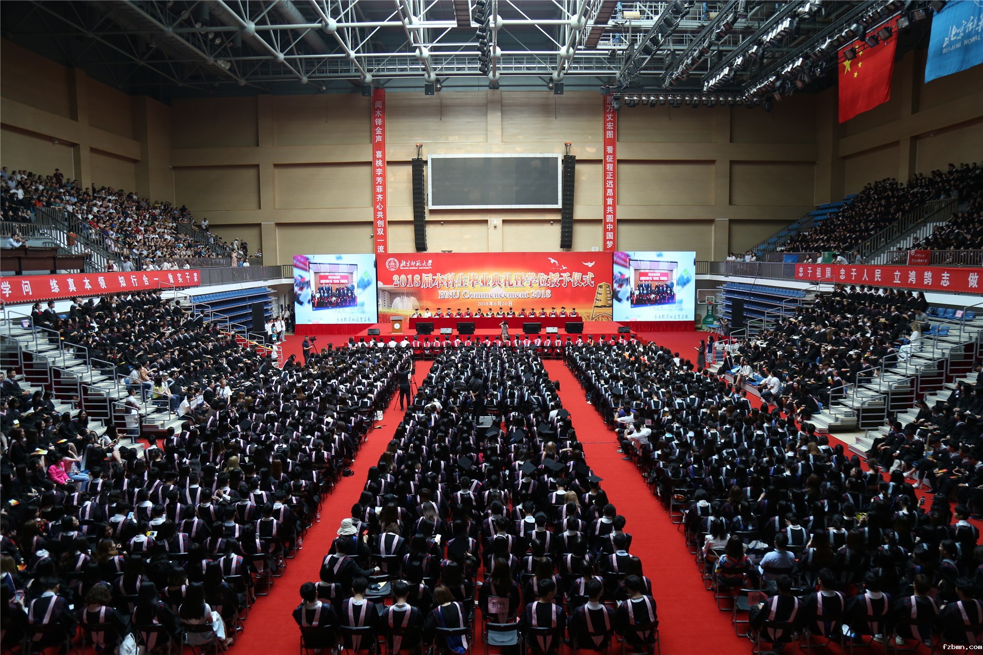 6月26日上午,我校2018届本科生毕业典礼暨学位授予仪式在邱季端体育馆隆重举行。党委副书记、校长董奇,常务副校长史培军,党委副书记孙红培,副校长陈丽、王守军,学校学位评定委员会委员以及校友代表、中央广播电视总台《中国诗词大会》总导演颜芳出席典礼,相关职能部处和各学部、院系负责人,毕业班班主任和辅导员,教师代表以及22个学部、院系的2500余名本科毕业生,近400名毕业生家长代表共同参加典礼。典礼由常务副校长史培军主持。