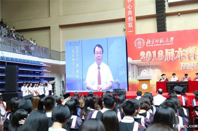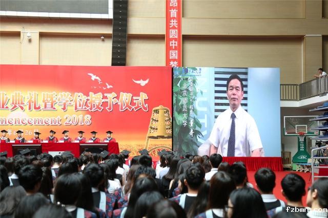 典礼前,全体师生和家长通过视频《此间少年》共同回顾了2018届毕业生大学四年的芳华岁月和青春时光。党委书记程建平和校长董奇在毕业寄语视频中对同学们圆满完成学业表示祝贺,勉励毕业生们继续秉承“学为人师、行为世范”的校训精神,牢记使命、勇于担当,努力争做爱国、励志、求真、力行的新时代青年。