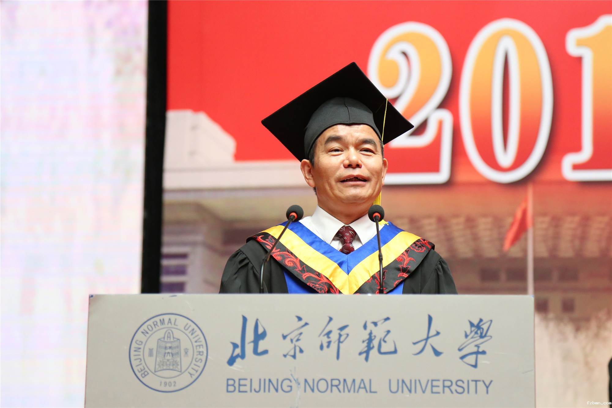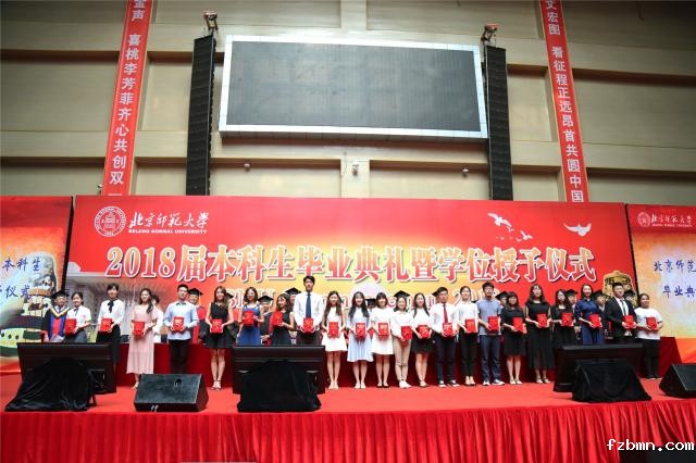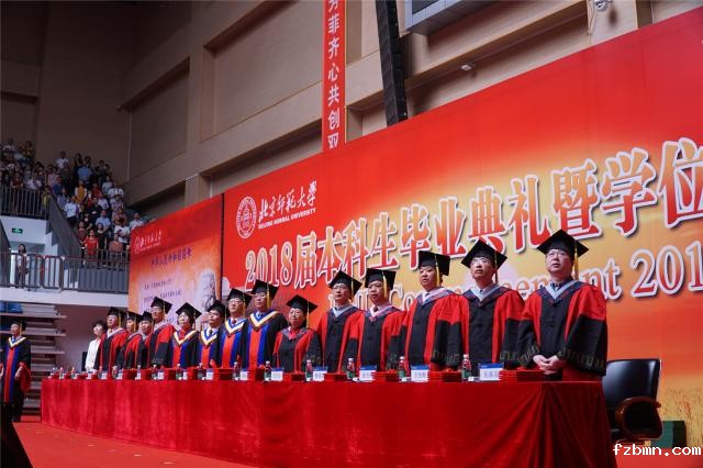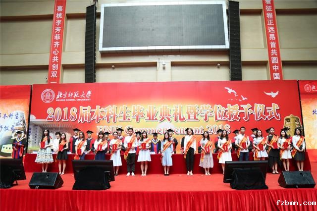 毕业典礼在雄壮的国歌声中拉开帷幕。党委副书记孙红培宣读了《betway官网关于表彰2018届北京市优秀本科毕业生的决定》,教育学部张艺等127名同学荣获“北京市优秀毕业生”称号;副校长陈丽宣读了《betway官网关于表彰2018届校级优秀本科毕业生的决定》,外国语言文学学院程康笛等255名同学被评为“betway官网校级优秀毕业生”,经济与工商管理学院李慧佳等6名同学被评为“betway官网本科留学生优秀毕业生”;副校长王守军宣读了《betway官网关于表彰到基层和西部就业的2018届本科毕业生的决定》,今年我校共有18名本科毕业生响应国家号召、服务国家战略,赴西部和基层就业。出席典礼的学校领导、校友代表和学位评定委员会委员向受表彰同学颁发了荣誉证书。