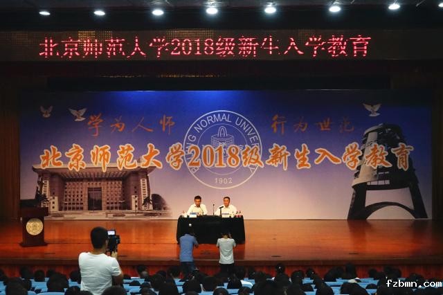 9月3日下午,党委副书记李晓兵以《志存高远,勇于担当,传承北师大人的卓越品质》为题,为全体本科新生上了入学教育第一课。李晓兵副书记用大量的史实、案例和数据,向同学们介绍了我校辉煌的办学历史、卓越的办学成就、强大的师资力量、雄厚的科研实力以及杰出的名家校友,并向大家详细介绍了我校“双一流”建设的宏伟目标和规划蓝图,加深了同学们对于校史校情和发展战略的全面了解,增强了同学们的自豪感和荣誉感。李晓兵副书记勉励全体新生传承北师大爱国忧民的优良传统,做有理想信念的北师大人;传承北师大盛德励耘的优良传统,做有道德情操的北师大人;传承北师大求真创新的优良传统,做有扎实学识的北师大人;传承北师大上善乐育的优良传统,做有仁爱之心的北师大人。他希望同学们铭记“学为人师、行为世范”的校训精神,坚定理想信念、练就过硬本领、矢志艰苦奋斗、勇于创新创造,努力争做爱国、励志、求真、力行的时代新人。