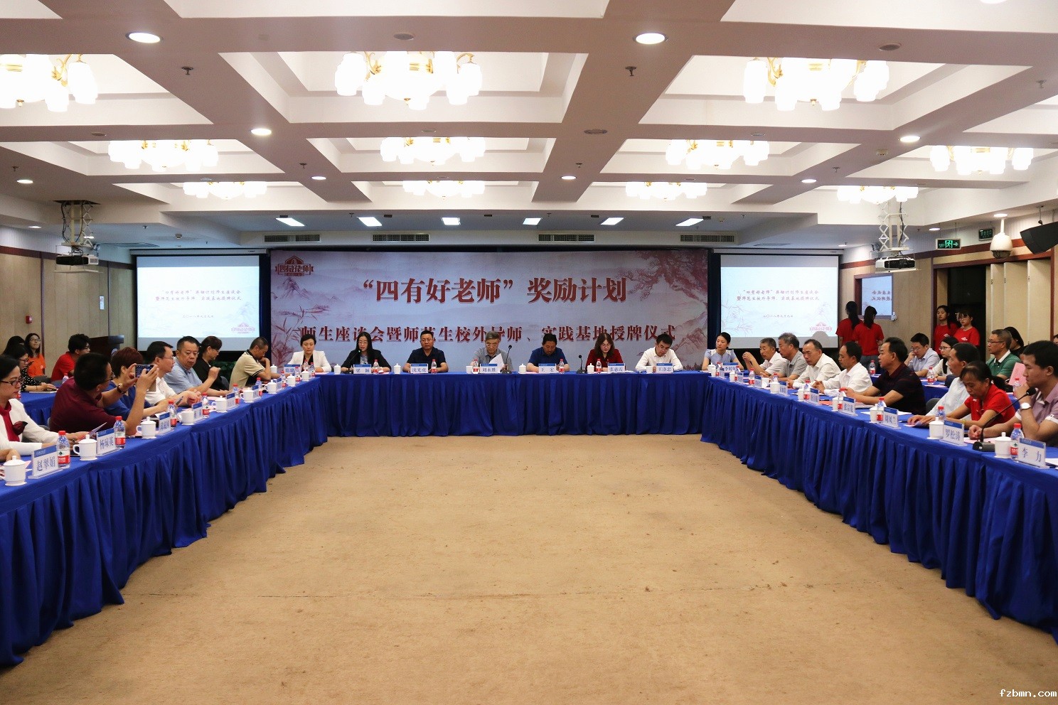 9月9日,以“争做四有好老师,同筑中华教育梦”为主题的“四有好老师”奖励计划师生座谈会暨师范生校外导师、实践基地授牌仪式在我校成功举行。“四有好老师”奖励计划启功教师奖获奖教师以及公益行动奖获奖团队代表参加了座谈会。校党委教师工作部、党委学生工作部、中国基础教育质量监测协同创新中心等部门相关负责同志出席座谈会,来自全校12个公费师范生培养单位的60余名师生代表与获奖教师进行了深入交流。