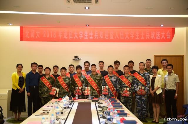 9月7日,我校2018年退伍大学生士兵欢迎暨入伍大学生士兵欢送会在京师学堂第二会议室举行。党委学生工作部、党委武装部负责同志、各学部院系的负责教师、征兵工作联络人、退伍老兵和入伍新兵50余人参加了大会。
