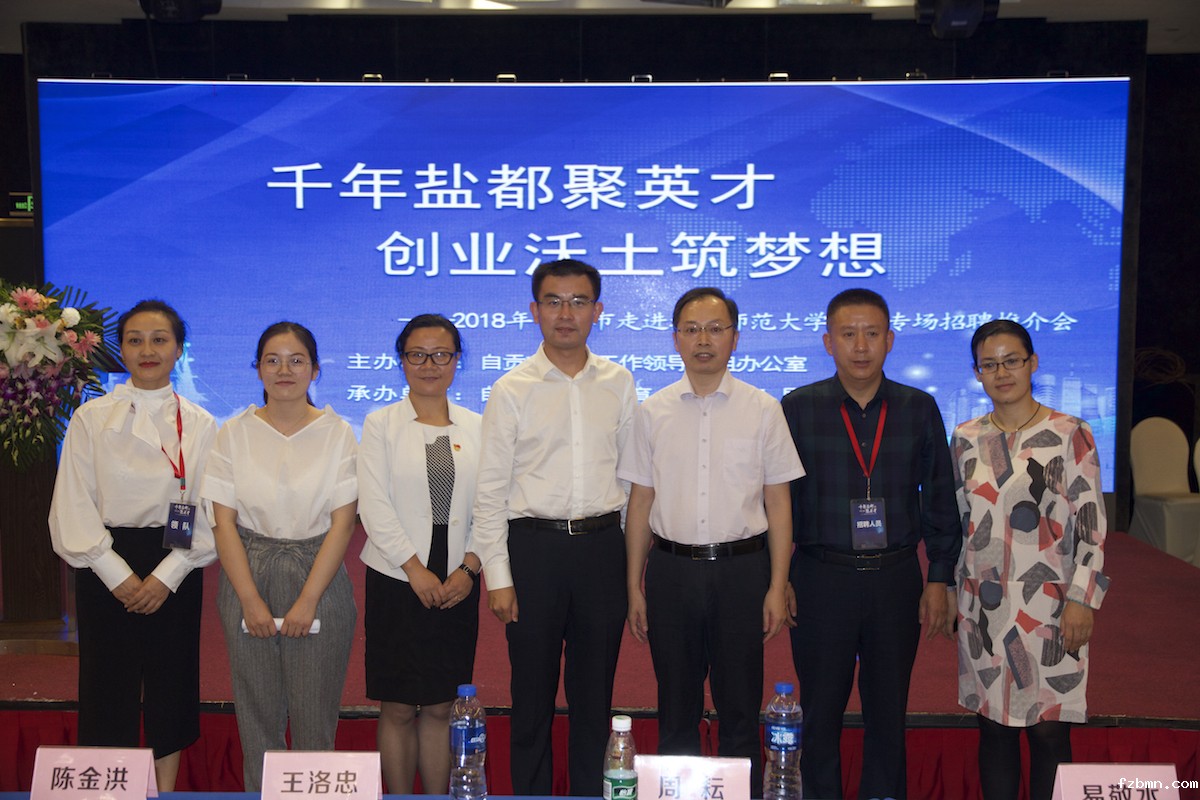 会上,与会人员一起观看了自贡市形象宣传片。党委学生工作部负责同志致欢迎辞,对自贡市长期以来对我校学生就业工作的关心与支持表示感谢,简要介绍了我校的校史校情、办学定位、专业设置、优势学科以及学生就业情况等,希望我校与自贡市就人才培养与就业工作达成密切合作。陈金洪副部长、周耘局长先后就自贡的地域文化、区位优势以及招才引智的优惠政策等进行了推介宣传,并真诚希望我校在人才输送、实习实训等方面给予自贡市大力支持。随后,现场举行双选会,自贡赴我校招聘单位与有意向前往自贡工作的学生进行了现场交流。