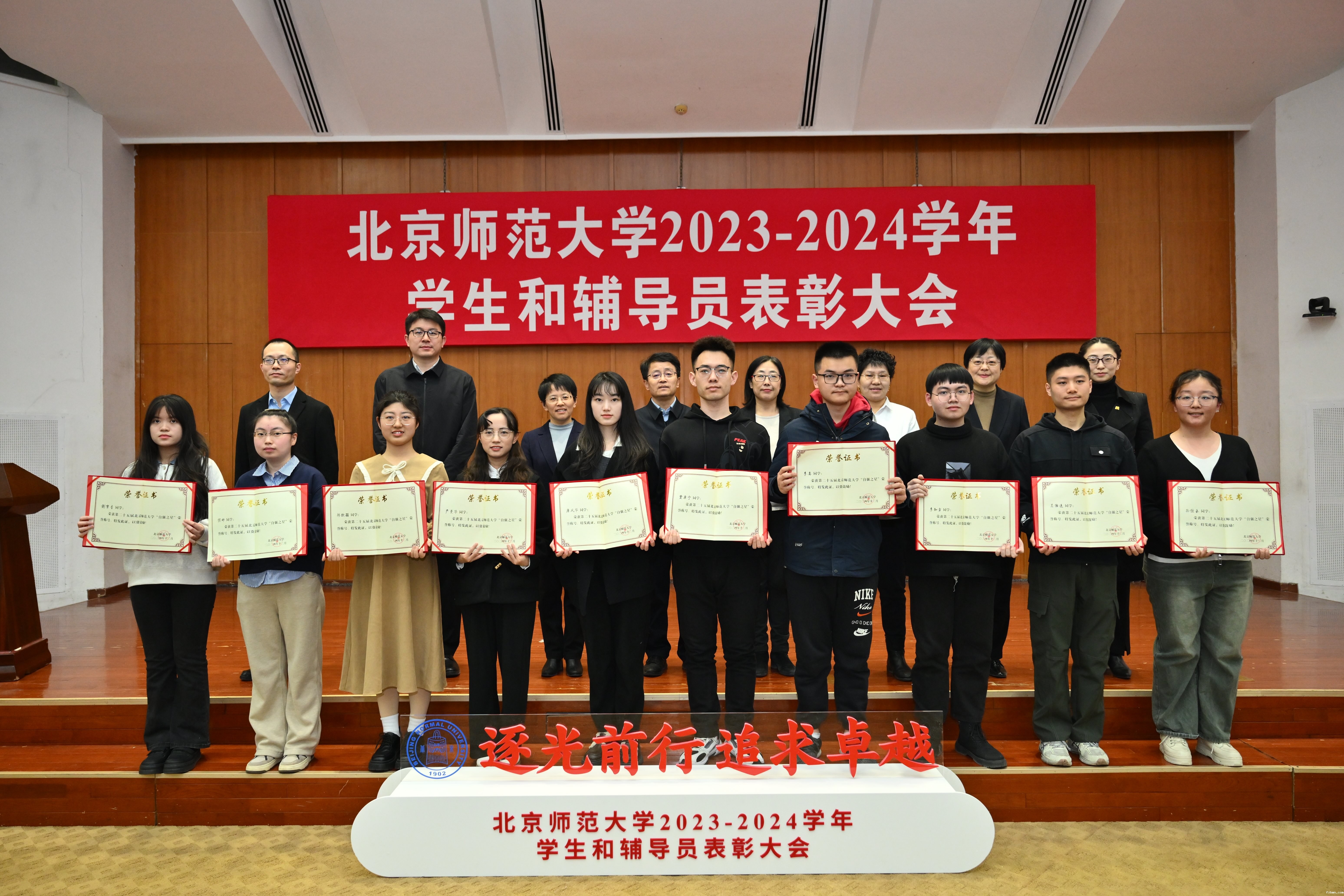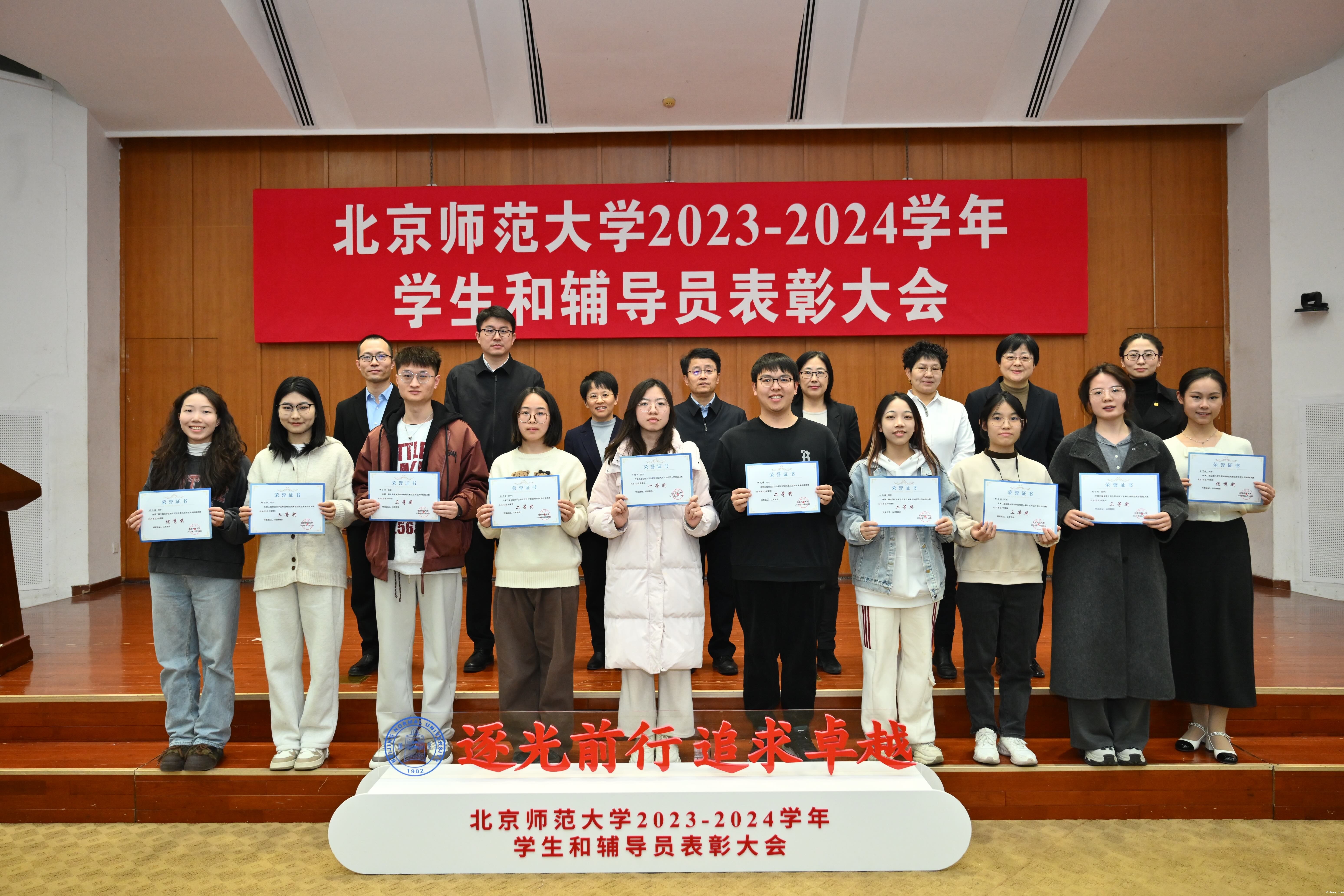 大会宣读了各类奖项的表彰决定和获奖名单,对国际和国家级奖项获奖学生团体和个人代表、“十佳大学生”、“自强之星”、京师先锋号党支部一等奖获奖集体代表、优秀班集体一等奖获奖集体代表、全国大学生职业规划大赛betway官网校赛决赛获奖代表、学生工作先进集体和学生工作特色奖获奖代表、“红旗团委”获奖代表、“弘德辅导员”、“十佳辅导员”、“就业工作标兵”等进行了表彰。